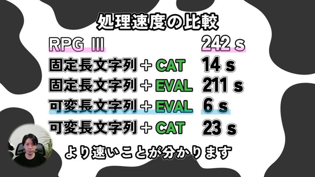 実は、可変長文字列と固定長文字列のどちらを使用するかによって、処理速度に差が出ることがあります。